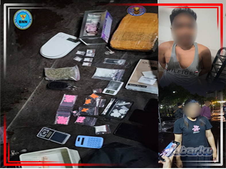 Dalam pengungkapan tersebut, petugas mengamankan dua orang terduga pelaku berinisial RP dan LA. Keduanya diamankan bersama sejumlah barang bukti berupa 40 butir pil ekstasi, paket ganja dalam berbagai kemasan, sabu dalam plastik ukuran besar dan kecil, ketamin, satu buah cartridge, timbangan digital, serta tiga unit telepon genggam yang diduga digunakan untuk aktivitas jaringan.