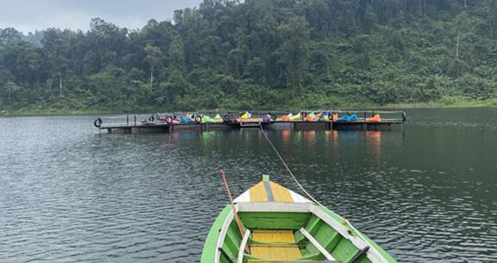 Selain itu, floating lodge menawarkan pengalaman berbeda dengan konsep bersantai di atas permukaan danau. Pengunjung dapat menikmati suasana tenang sambil duduk di kursi santai maupun bean bag yang disediakan. Ke depan, konsep ini juga akan melibatkan pedagang lokal yang berjualan menggunakan perahu, sehingga menghadirkan pengalaman wisata yang lebih hidup sekaligus memberdayakan masyarakat.