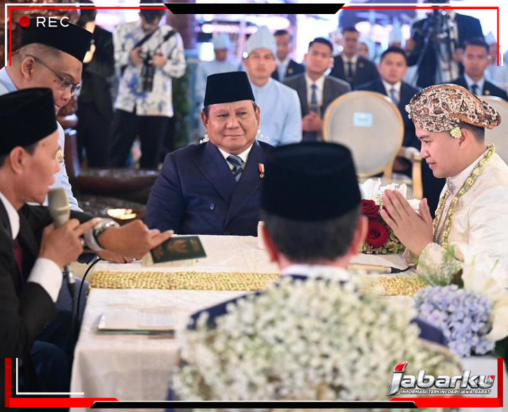 Jabarku.co.id | Suasana haru menyelimuti prosesi akad nikah Sekretaris Pribadi Presiden Prabowo Subianto, Agung Surahman, dengan Aulia Mahardiana Warsitoarti yang digelar di Gedung Sasono Utomo, Taman Mini Indonesia Indah (TMII), Jakarta, Minggu (18/1) pagi.