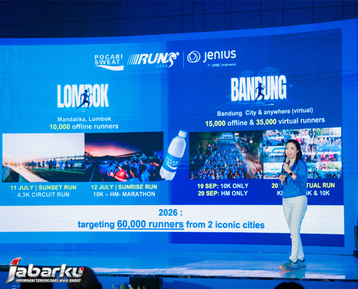 Jabarku.co.id | POCARI SWEAT kembali menegaskan komitmennya dalam memajukan olahraga dan pariwisata Indonesia dengan mengumumkan penyelenggaraan POCARI SWEAT Run 2026, yang memasuki edisi ke-13. Ajang lari hybrid terbesar ini akan digelar di dua destinasi unggulan, Lombok, Nusa Tenggara Barat dan Bandung, Jawa Barat, sebagai bagian dari upaya mendorong pertumbuhan sport tourism yang sejalan dengan program pemerintah. Pengumuman resmi tersebut disampaikan di Jakarta, Kamis (22/1/2026).