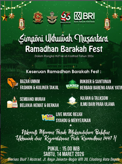Melalui kegiatan ini, Kostrad berharap dapat menghadirkan Ramadhan yang tidak hanya penuh kegembiraan, tetapi juga sarat nilai kebersamaan, kepedulian, dan keberkahan bagi masyarakat sekitar.